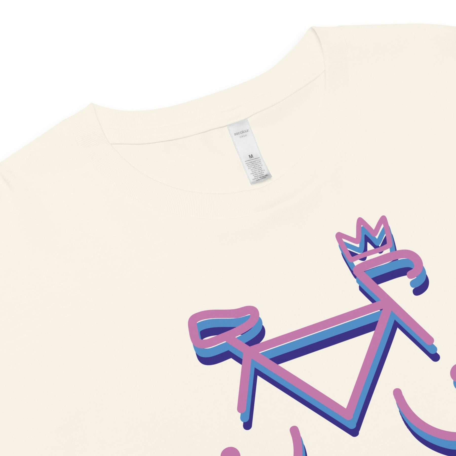 The fit is relaxed and boxy, with a ribbed crew neck, side seams and a cropped length that falls just above the hips. It has dropped shoulders and a straight fit that suits a variety of body types. For the 'Bike Rack' design, if you have a larger chest it's safer to size up for optimal wheel placement, although this makes it a bit less 'crop'.
